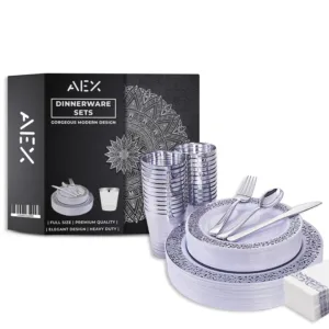 AEX 175-Piece Disposable Dinnerware Set for 25 People – Elegant and Convenient Dining Solution