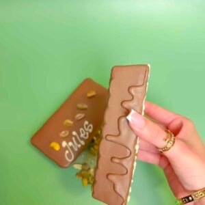 Our bestseller and a true customer favourite. The Pistachio & Kunafah Chocolate Bar is inspired by the famous Dubai-style chocolate, combining rich, nutty pistachio flavours with layers of crispy kunafah, all wrapped in smooth Belgian milk chocolate.